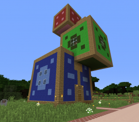 Fubaka's Crazy Technicolor Cube Tower is an attraction located directly to the north of Tesseract's spawn point. Built by Fubaka, it was meant to serve as an artistic landmark.